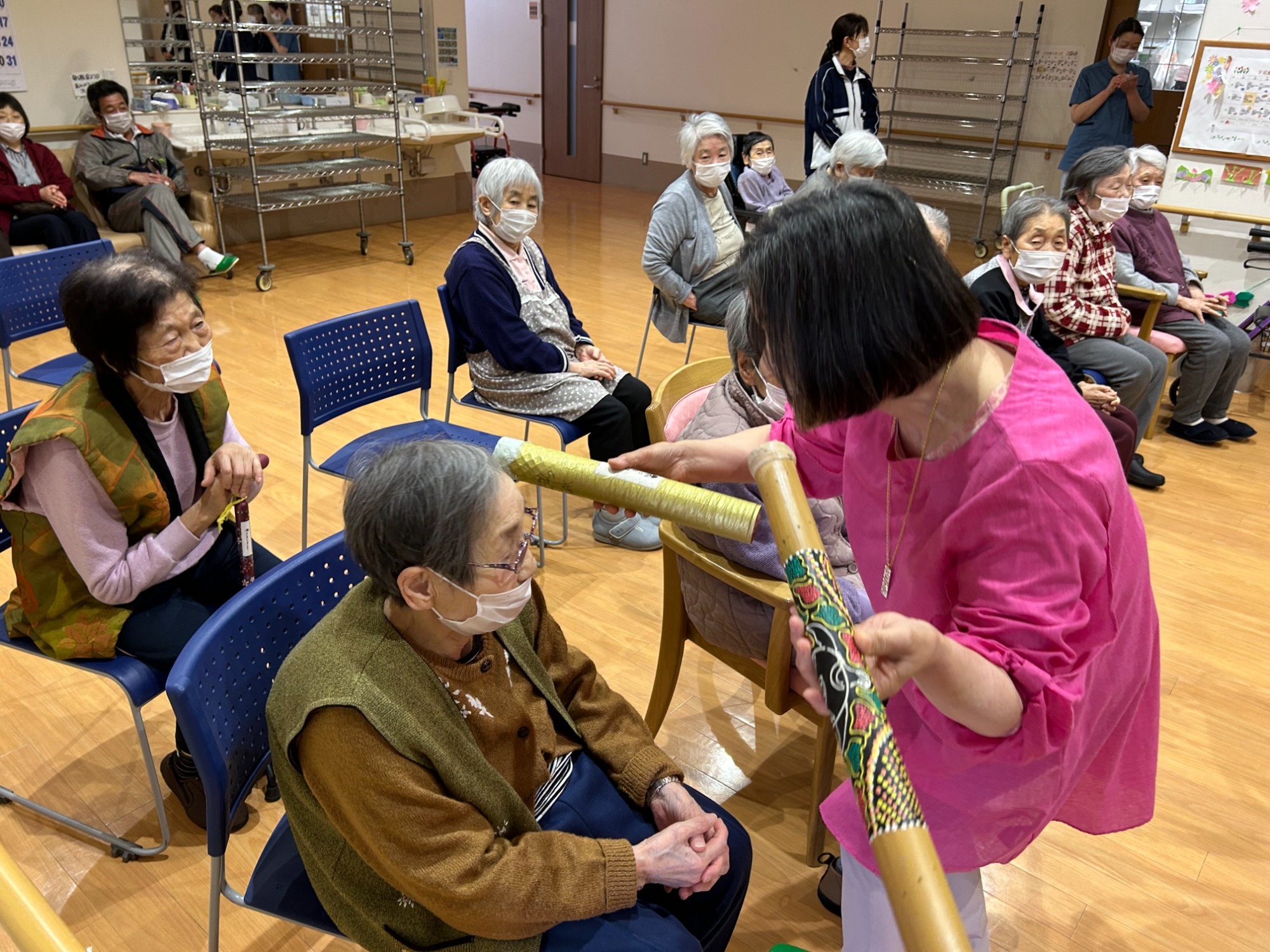 利用者のみなさん、不思議な音がでる楽器を初めて聞いていました。