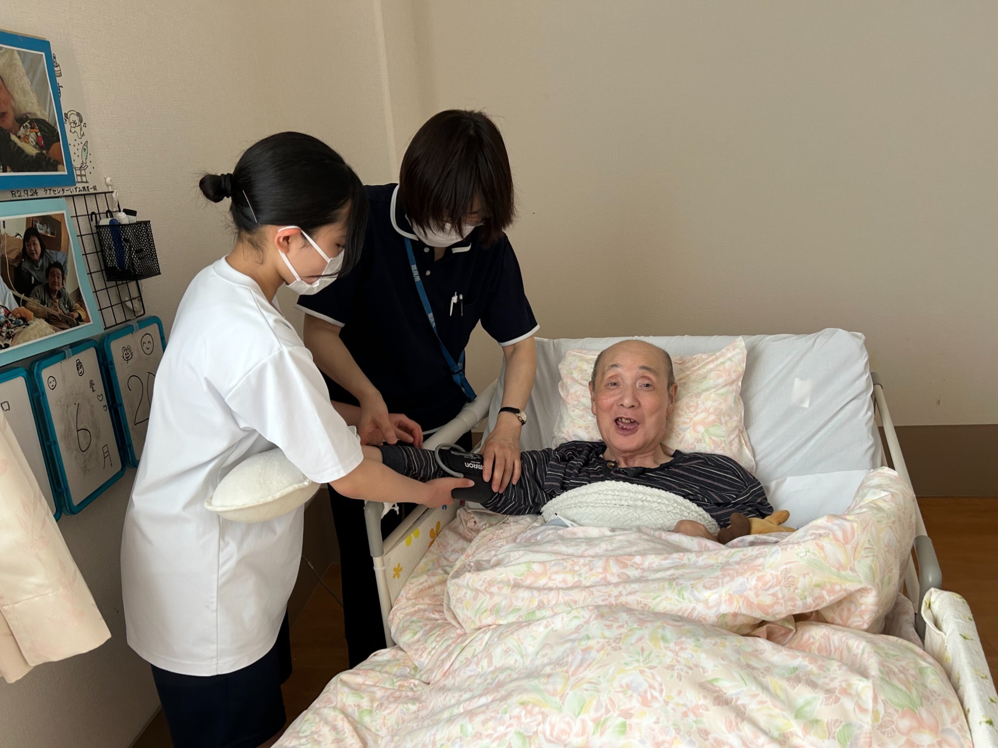 施設での「看護業務」の体験です。将来、看護師を目指している高校生です。