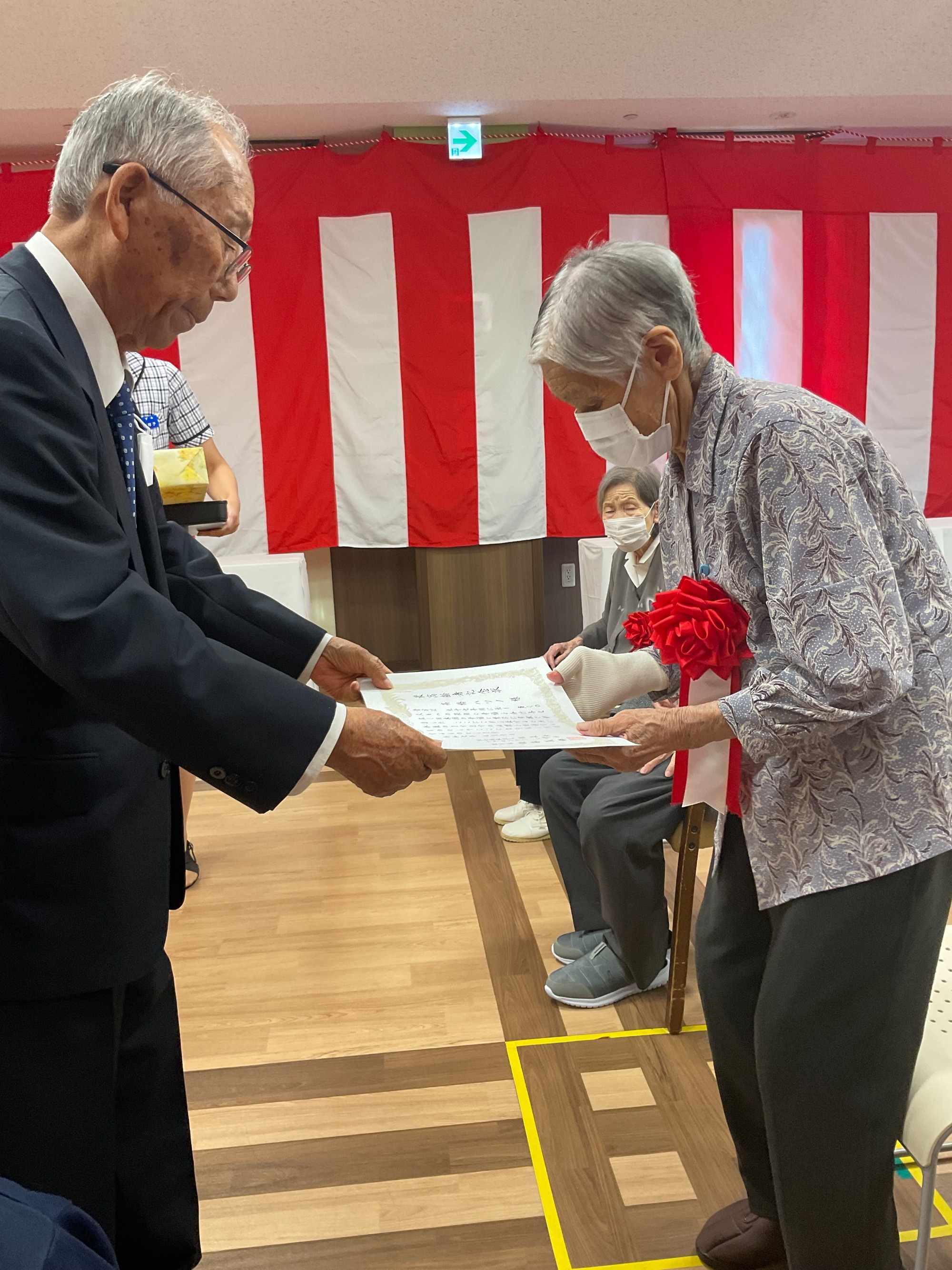 卒寿代表の表彰です。利用者さん、感動しておりました。