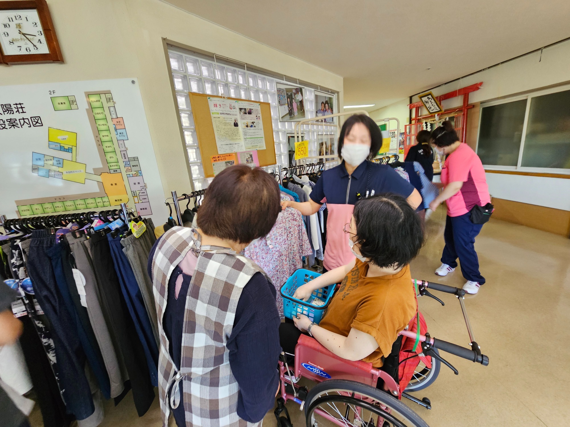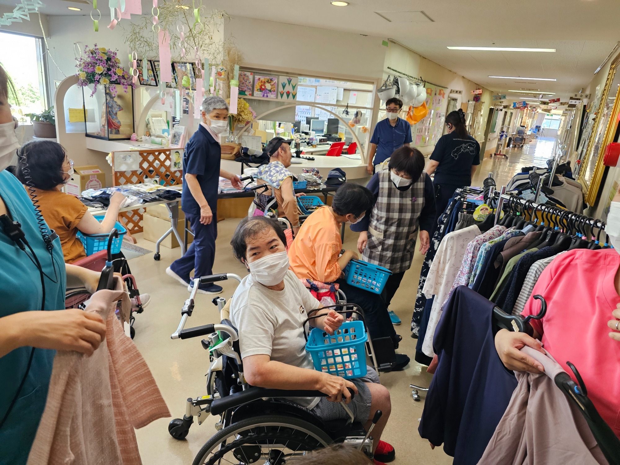 7月31日、皆さんが待ちに待っていた、「施設で買い物を楽しむ日」がやってきました。普段、外で、買い物をする機会が少ない為、「何を買おう」「似合う?」と、迷ったりしている声もありましたが、皆さん無事に購入できたようです。