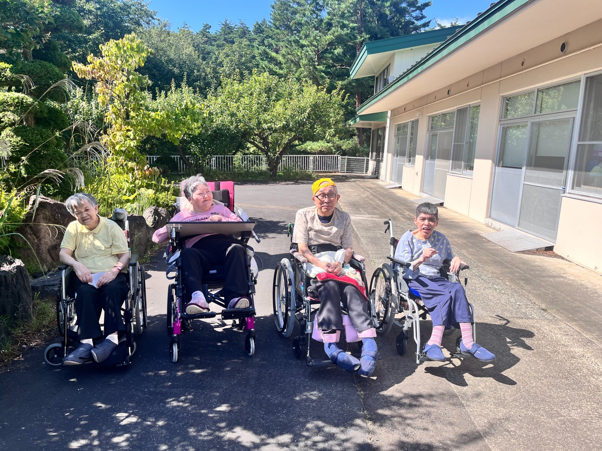 秋の季節になり、お外も暖かくて、利用者様の希望があり、敷地内をお散歩しました。「秋なのに、ポカポカ暖かくて気持ちいいですね!」と笑顔が見られていました。