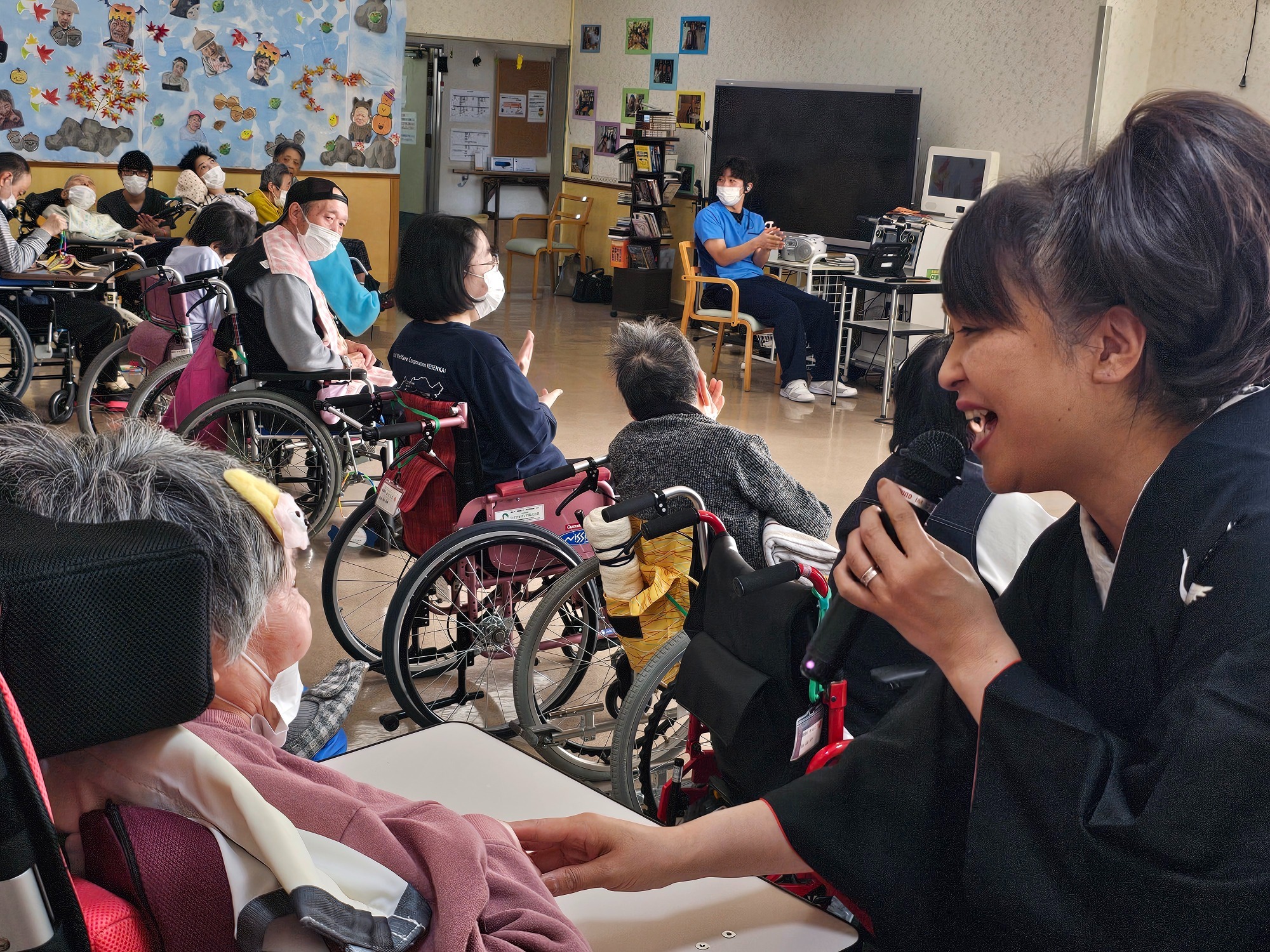 毎週水曜日に歌が好きな利用者様が集まります。通信カラオケなので曲目も多く、色々な年代の曲を歌って楽しんで頂けます。